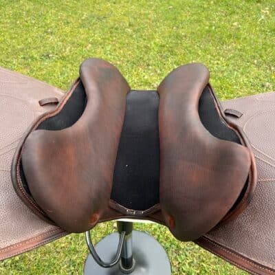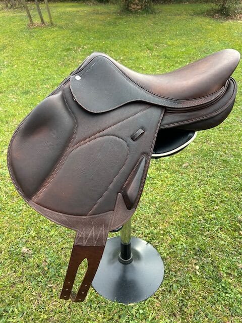 Cette selle de Jumping FG Sellerie intègre le principe FG Position Control®, visant à garantir une position stable, constante et reproductible à chaque redescente.
